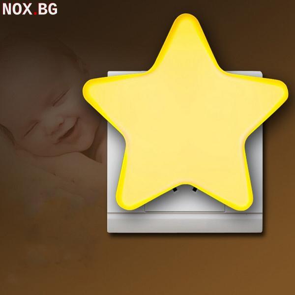 Енергоспестяваща нощна лед лампа за стена с копче за включване и изключване. Лед лампа за контакт с форма на звезда в различни цветове. Симпатична нощна лед лампичка, идеална за всяко детско помещение. Специално разработена, за да пести електроенергия.