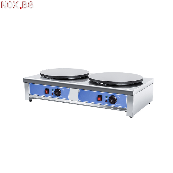 Двоен котлон за палачинки е професионална плоча, предназначена за интензивна работа в сладкарници, ресторанти, обекти за закуска, вериги за бързо хранене и мобилни сергии. Двойната нагревателна зона позволява едновременно приготвяне на палачинки и осигурява висока производителност при натоварен работен процес. Регулируемият термостат в диапазон от 50°C до 300°C позволява прецизен контрол на температурата при различни рецепти и видове тесто. Незалепващото покритие предотвратява залепване и улеснява почистването, като намалява нуждата от мазнини. Конструкцията от неръждаема стомана гарантира устойчивост на корозия, здравина и дълъг експлоатационен живот. Високоефективните нагревателни елементи осигуряват бързо загряване и равномерна температура по време на работа, което прави уреда надеждно решение за професионални кухни.